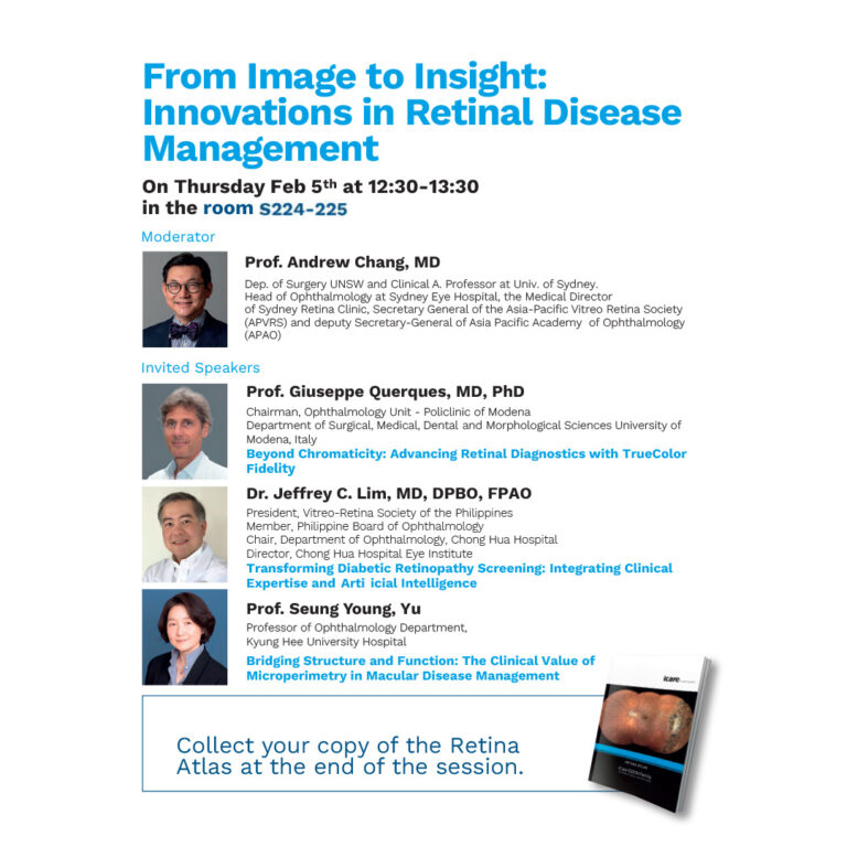 Join us on Thursday, February 5th, for our Lunch Symposium and gain valuable insights into the innovations in the management of retinal diseases.Three distinguished speakers will share their perspectives, each exploring different angles covering three trending fields.